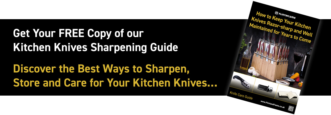 To enjoy your Flint & Flame knives at their very best means keeping them sharp, and the best way to do that is with our new Tri-Wheel Sharpener, or our Flint & Flame Whetstone.