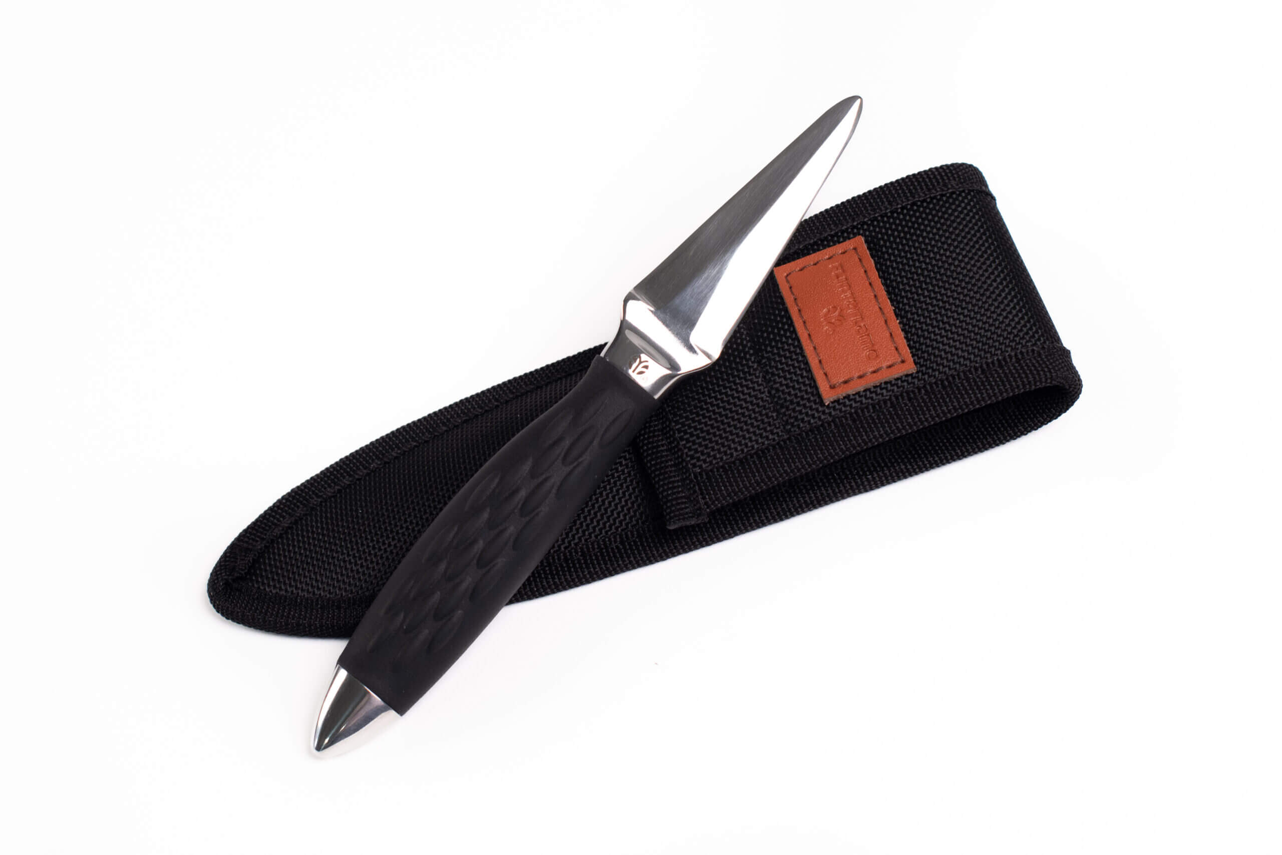 This artfully crafted multiple purpose knife shucks raw or steamed bivalves from the top, side or bottom. Its strong double-sided blade cutting them out of the shell with ease. Perfect for both left and right handed cooks.